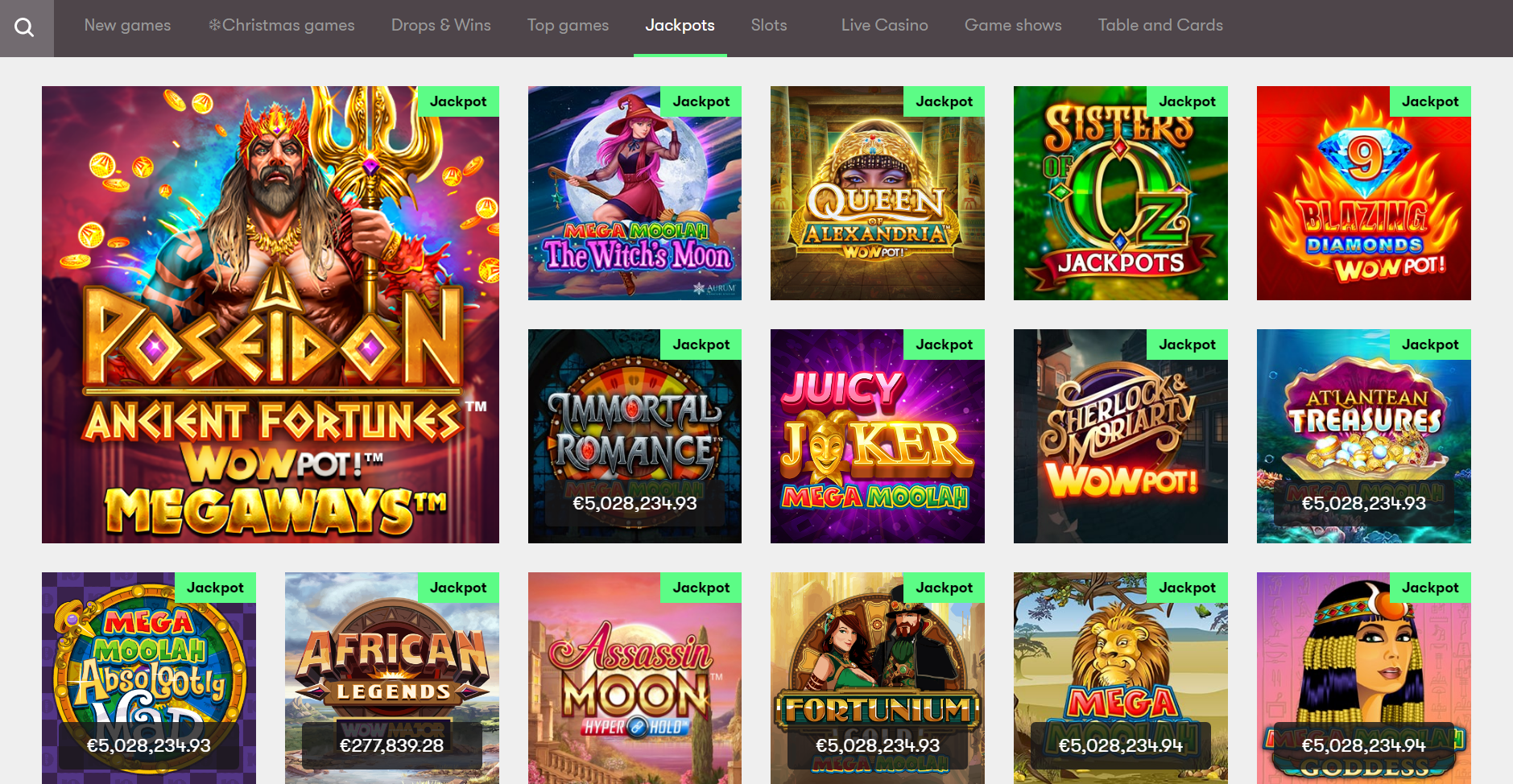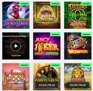 Jackpot saavutatakse, kui teatud kombinatsioon vallandab vähemalt 100%-lise võidu. Teisisõnu, kui mängija mängib õnnemängu ja tabab võtmenumbri, avab see kõik masinas olevad mündid. 10Bet pakub õnnelikele kätele lõputu arvu jackpotmänge. Kõige populaarsem on “Mega Moolah”, mis on microgamingu legendaarse multifilmiga.