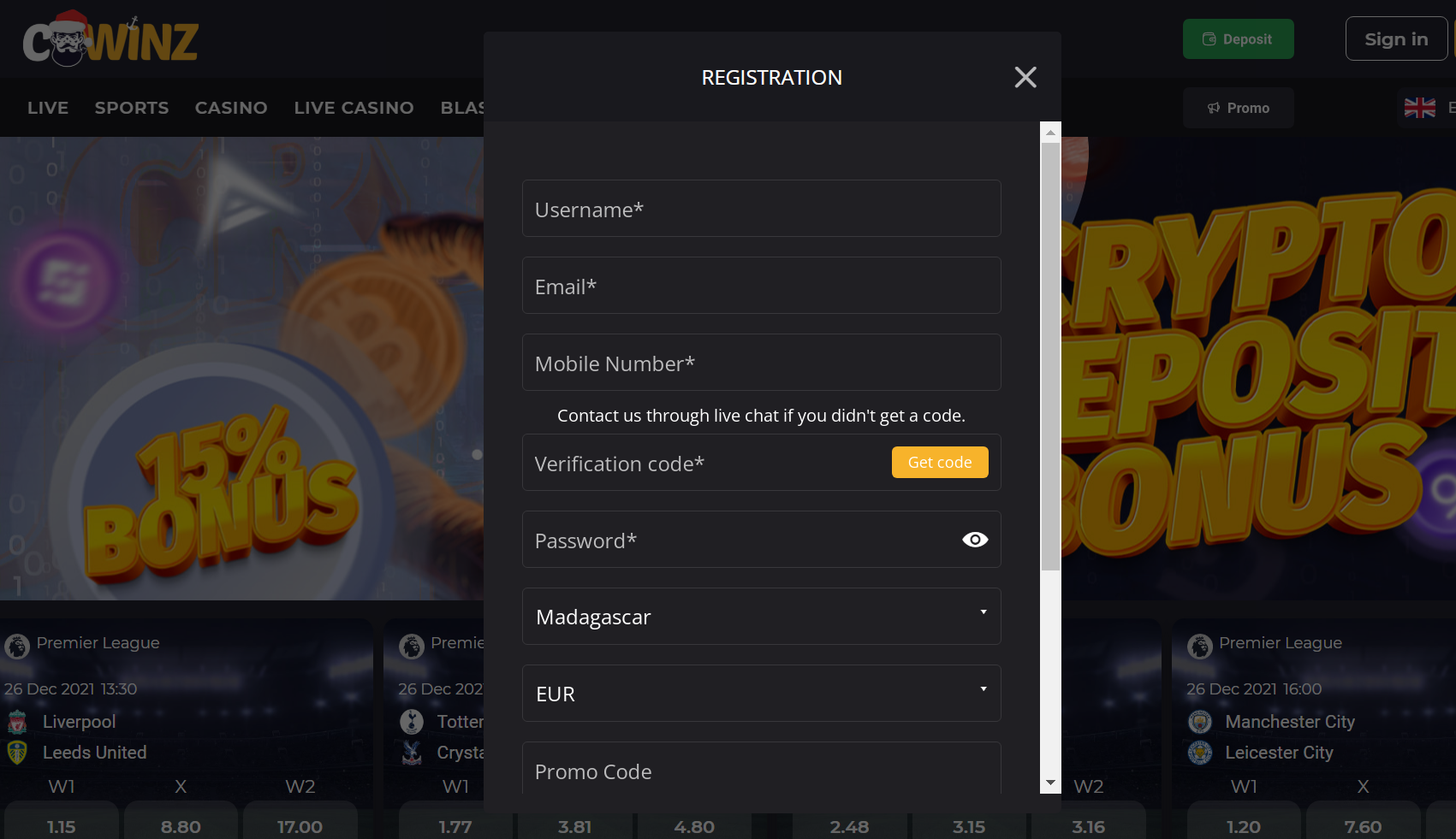 C Winz’i konto loomiseks külastage platvormi või saatke oma number WhatsAppi aadressil 212777023317. Seejärel saadetakse teile lühivorm. Ei midagi liiga pikka, vaid lihtsalt vajalik teave. Need peaksid sisaldama teie täisnime, e-posti aadressi ja isikutunnistuse numbrit. Kui olete selle täitnud, saatke vorm tagasi, jällegi WhatsAppi teel. Teile teatatakse, et teie C Winz’i konto on edukalt loodud. Seda kontot kasutatakse kõigi teie tehingute tegemiseks platvormil: panustamine, kasiino, laadimine jne. Veelgi enam, C Winz agent on alati kättesaadav, teie teenistuses igal ajal. Ärge kartke temaga WhatsAppis ühendust võtta, kui teil on lisaküsimusi.